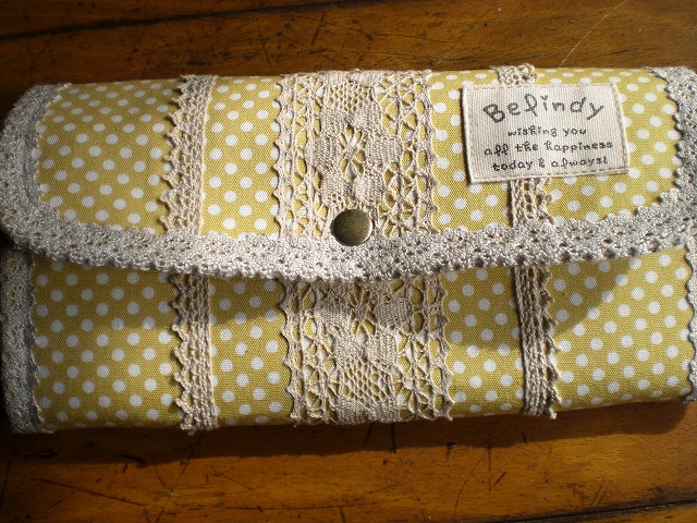 黄色のかわいいお財布が欲しかったので「黄色のドットでお願いします<(_ _)> 」と言いましたら心よくうけてくださいました♪(作者の許可をとりこちらに載せさせていただいてます)