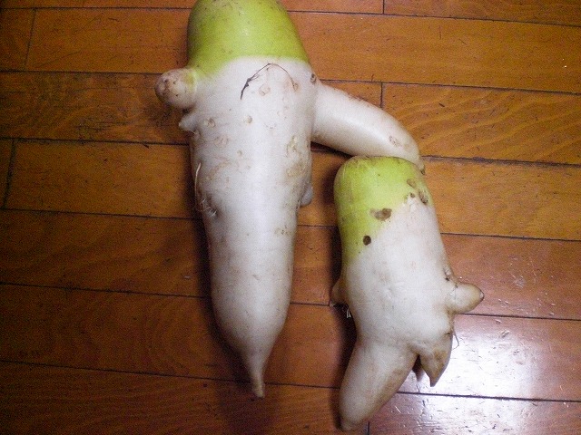 「変な形だけどもってきた」と確かに変な大根です(笑)記念にパシャ!