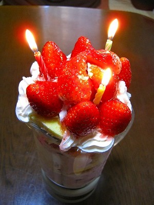 恒例になったミキサーパフェでお祝いしました♪