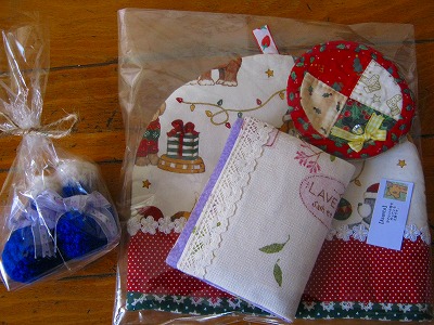 私がいただいたのはクリスマス気分満載の布小物盛りだくさんです♪かわいいでげしょ