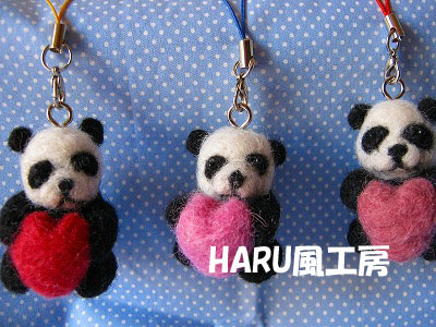 ハートをもったパンダちゃんストラップできました♪