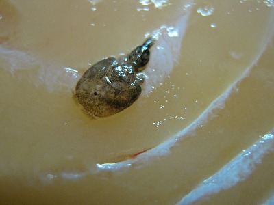 2ミリくらいの生き物で、はたからみたらうろこにしか見えませんでしたが